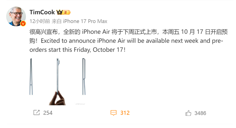 苹果CEO库克在直播间宣布,苹果iPhone Air国行版本将于10月17日正式开启预购,并且在10月22日发售,目前官方已经接受相关手机的预约。作为苹果旗下最为轻薄的iPhone,iPhone Air的厚度仅为5.5mm,因此苹果也牺牲了不少的部件,例如实体SIM卡槽,仅保留eSIM卡,因此想要顺利使用国行iPhone Air,就需要三大运营商的配合,就在昨天,包括中国移动、中国电信以及中国联通均表示其eSIM业务获得了批复,目前已经开启预约,自然国行iPhone Air也就能在国内顺利使用了。