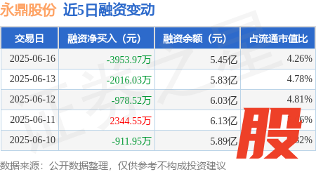 本站消息金岭速配,6月16日,永鼎股份(600105)融资买入1.38亿元,融资偿还1.77亿元,融资净卖出3953.97万元,融资余额5.45亿元,近20个交易日中有13个交易日出现融资净买入。